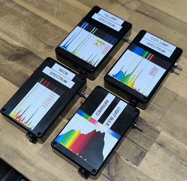 I would like to introduce new small spectrometer, based on the first version HERE. This spectrometer uses 1080p webcam module with high sensitivity "STARVIS" IMX290 sensor and profi slit 100um. Difraction gratings 1000lines/mm. I also developed spectrum calibrators, small box inludes light source and 18650 batery powered driver.